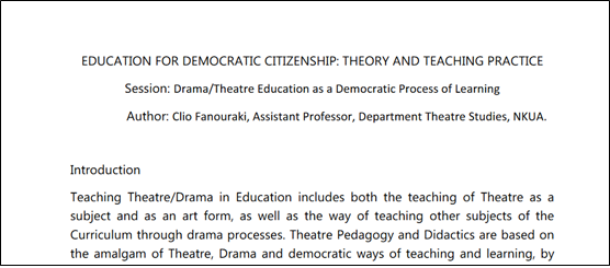 7C-DRAMA EDUCATION - Session 1- Education for Democratic Citizenship: Drama/Theatre Education as a Democratic Process of Learning (Paper)
