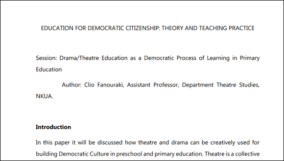 7C-DRAMA EDUCATION - Session 2- Education for Democratic Citizenship: Drama/Theatre Education as a Democratic Process of Learning in Primary Education (Paper)