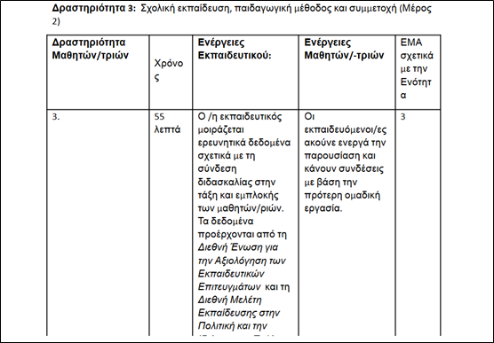 Ενότητα 5, Εκπαίδευση, Εμπλοκή και Συμμετοχή (Δραστηριότητα 3)