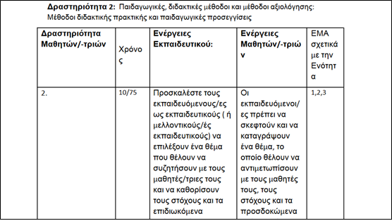 Ενότητα 6.2, Παιδαγωγικές, διδακτικές μέθοδοι και μέθοδοι αξιολόγησης: Μέθοδοι διδακτικής πρακτικής και παιδαγωγικές προσεγγίσεις (Δραστηριότητα 2)