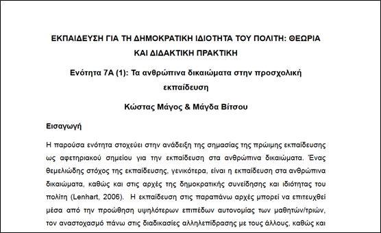 Ενότητα 7.1, Προσχολική Εκπαίδευση - Τα ανθρώπινα Δικαιώματα στην προσχολική Εκπαίδευση (Paper)