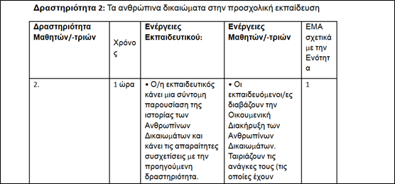 Ενότητα 7.1, Προσχολική Εκπαίδευση - Τα ανθρώπινα Δικαιώματα στην προσχολική Εκπαίδευση (Δραστηριότητα 2)