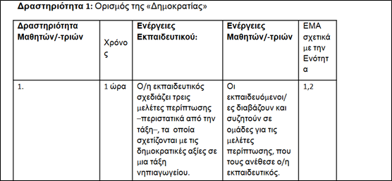 Ενότητα 7.2, Προσχολική Εκπαίδευση - Δημοκρατικό πλαίσιο σε τάξεις προσχολικής εκπαίδευσης (Δραστηριότητα 1)