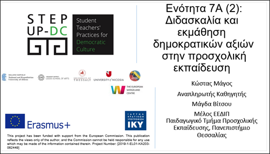 Ενότητα 7.2, Προσχολική Εκπαίδευση - Δημοκρατικό πλαίσιο σε τάξεις προσχολικής εκπαίδευσης (e-Μάθημα 3)