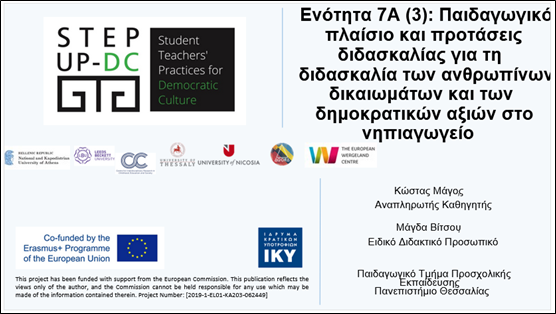 Ενότητα 7.3, Προσχολική Εκπαίδευση - Παιδαγωγικό πλαίσιο και προτάσεις διδασκαλίας για τη διδασκαλία των ανθρωπίνων δικαιωμάτων και των δημοκρατικών αξιών στο νηπιαγωγείο (e-Μάθημα 1)