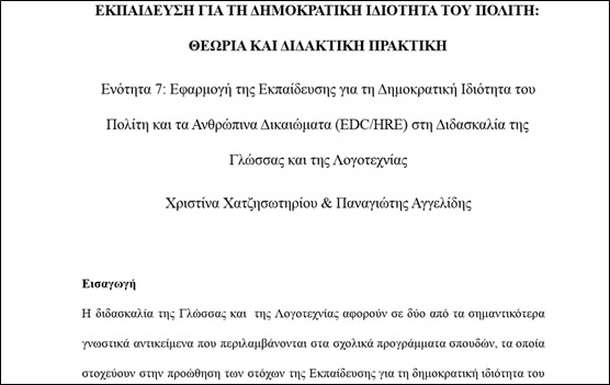 Ενότητα 7, Εφαρμογή της Εκπαίδευσης για τη Δημοκρατική Ιδιότητα του Πολίτη και τα Ανθρώπινα Δικαιώματα (EDC/HRE) στη Διδασκαλία Της Γλώσσας και της Λογοτεχνίας (paper)