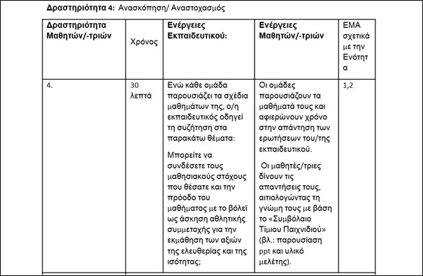 Ενότητα 7Γ, Αθλητική Αγωγή για την προώθηση της Εκπαίδευσης για τη δημοκρατική ιδιότητα του πολίτη και τα Ανθρώπινα Δικαιώματα: Διαθεματική εφαρμογή (δευτεροβάθμια εκπαίδευση-Δραστηριότητα 4)