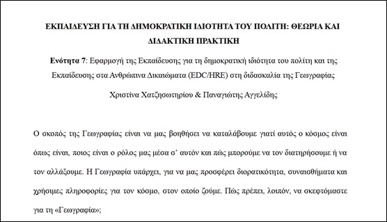 Ενότητα 7, Εφαρμογή της Εκπαίδευσης για τη δημοκρατική ιδιότητα του πολίτη και της Εκπαίδευσης στα Ανθρώπινα Δικαιώματα (EDC/HRE) στη διδασκαλία της Γεωγραφίας (paper)
